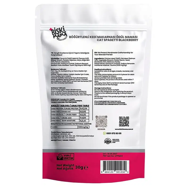 | Etiketler | BİSKİMAMA SPAGETTİ KEDİ ÖDÜLÜ TAVUK SOMON BÖĞÜRTLEN 30 GR |