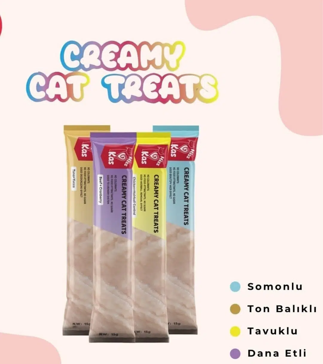 EtiketlerMiss Kas Kedi Ödül Maması (Somonlu, Tavuklu, Dana Etli, Ton Balıklı) 15g x 20 Adet