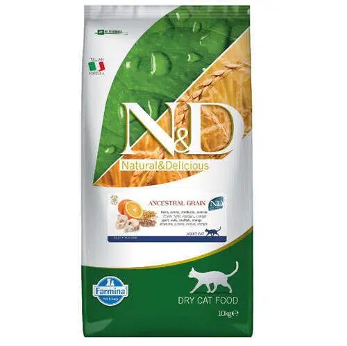 N&D Ocean Ancestral Az Tahıllı Portakallı Morina Balıklı Yetişkin Kedi Maması 10 kg