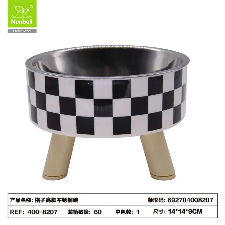 EtiketlerNunbell Yüksek Mama Kabı Kare Desenli Siyah Beyaz
