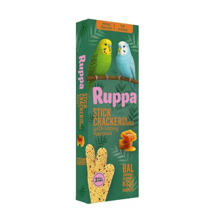 Ruppa Stick Cracker Bal Aromalı Muhabbet Kuşu Krakeri, muhabbet kuşlarının doğal beslenme davranışları ve lezzet tercihleri dikkate alınarak özenle hazırlanmış, eğlenceli ve lezzetli bir ödül yemidir. Bal aroması ile zenginleştirilen özel formülü sayesinde kuşlar tarafından severek tüketilir ve günlük beslenmeye keyifli bir çeşitlilik kazandırır.